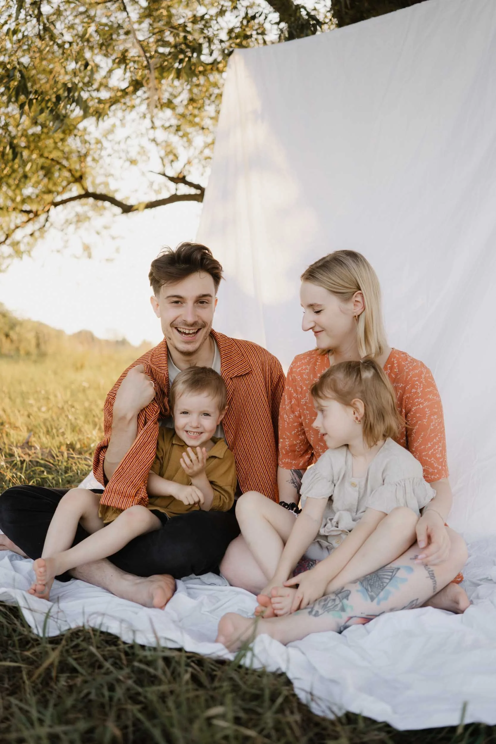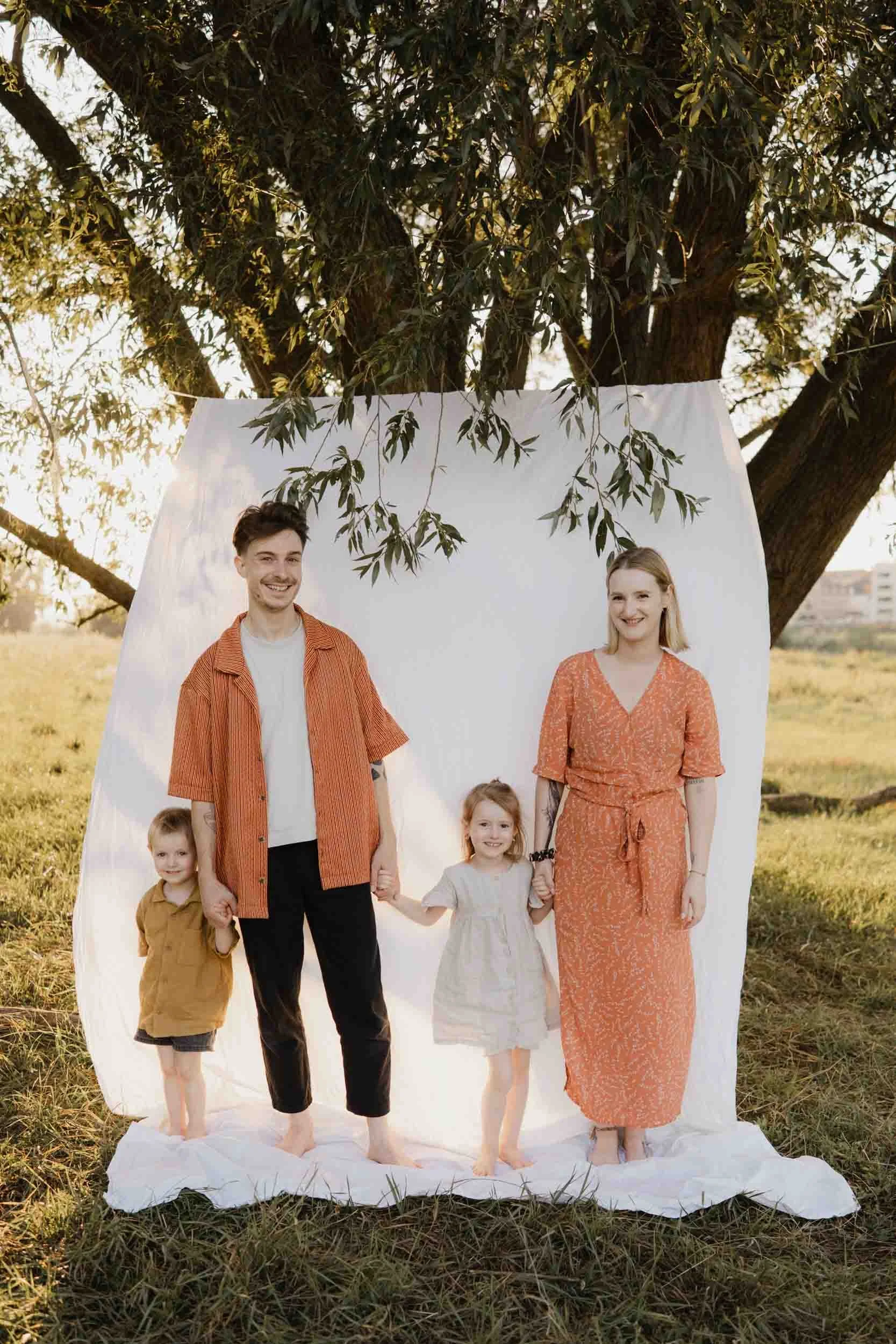 Für Familienshootings treffen wir uns gern draußen in der Natur – zum Beispiel im Großen Garten oder an der Elbe. Bei Newborn-Shootings ist es häufig am entspanntesten, wenn wir bei euch zu Hause fotografieren. In euren eigenen vier Wänden fühlt sich euer Baby sicher und ihr könnt alles in Ruhe vorbereiten. Optional können wir aber auch ein Tageslichtstudio buchen. Hierfür fällt eine zusätzliche Studiomiete an.