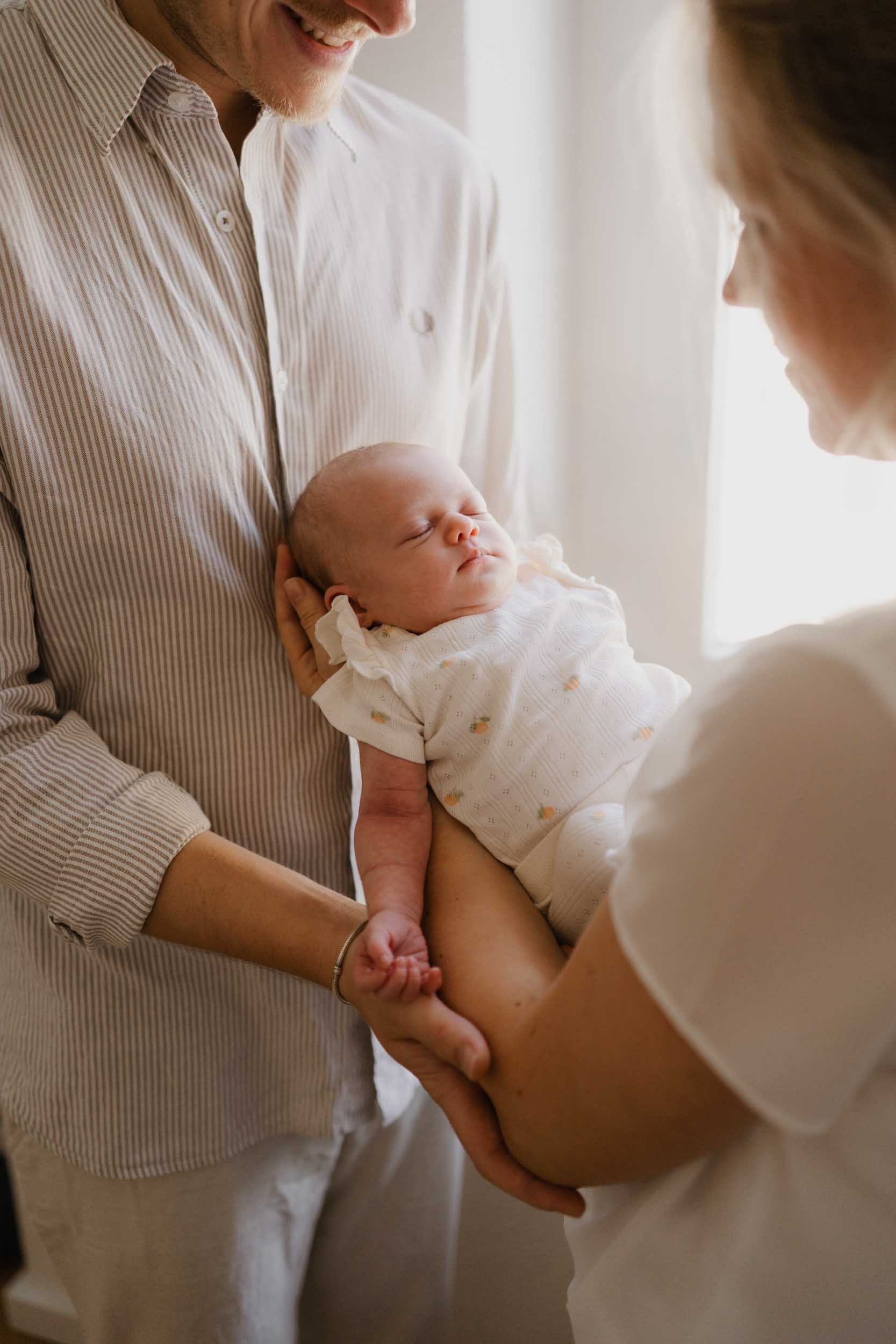 Der ideale Zeitraum für ein Newbornshooting liegt oft in den ersten drei Lebenswochen, da die Babys in dieser Zeit noch viel schlafen und besonders entspannt sind. Es gibt aber keine Regeln. Viel wichtiger ist, dass ihr euch nach der Geburt gut fühlt und den Moment wählt, der zu euch passt. Jede Familie startet anders ins gemeinsame Leben – daher entscheidet ihr ganz frei, wann es sich für euch und euer Baby richtig anfühlt.